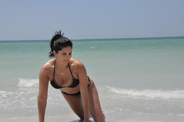 Hot and Sexy Model Sunny Leone Latest Bikini Shoot Stills in Beach